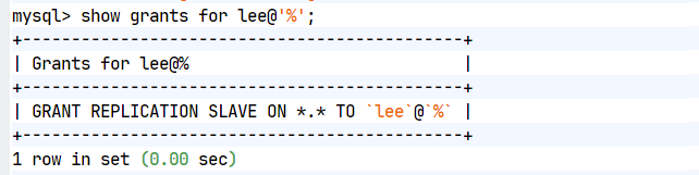 mysql> GRANT REPLICATION SLAVE ON *.* TO rpl_user@'%';