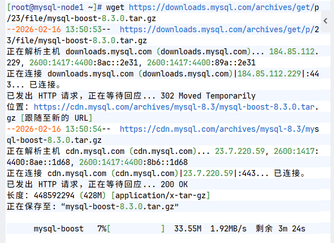 [root@mysql-node1 ~]# wget https://downloads.mysql.com/archives/get/p/23/file/mysql-boost-8.3.0.tar.gz