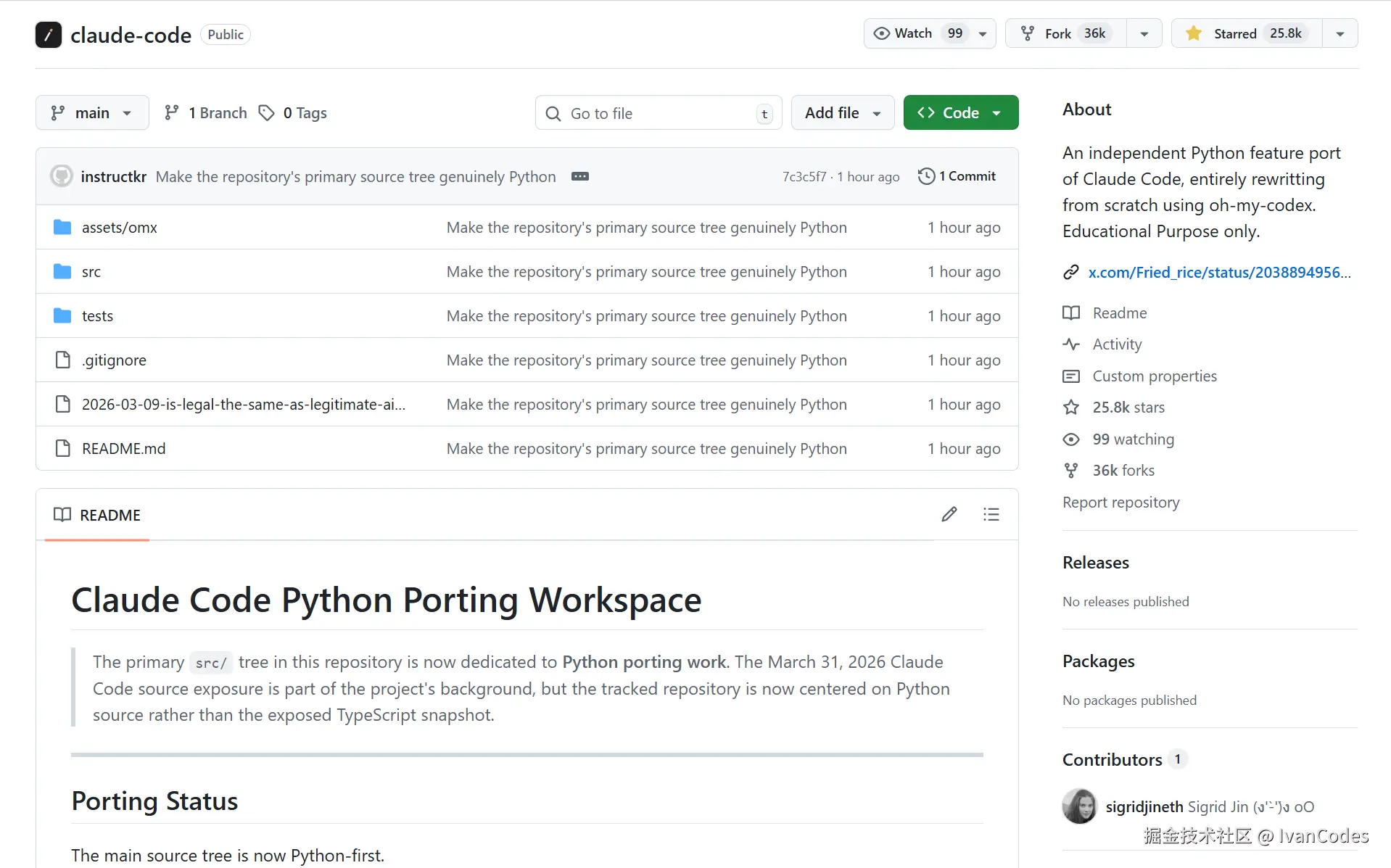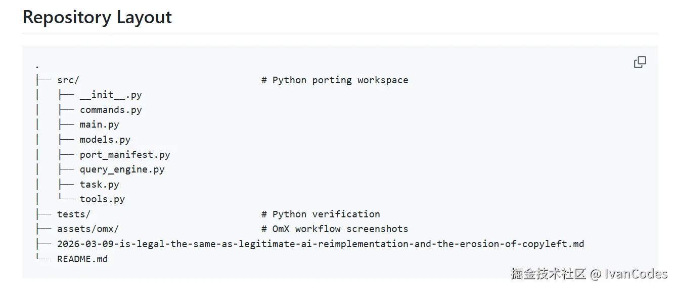 它现在不是一个能直接替代 Claude Code 的工具,而是一个正在重写中的 Python 版本骨架。