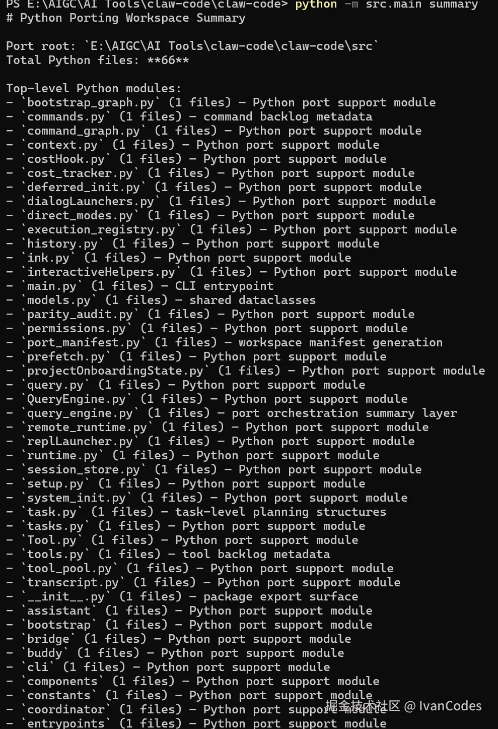 models.py→ 定义结构commands.py→ 命令清单tools.py→ 工具清单port_manifest.py→ 当前迁移状态main.py→ CLI入口