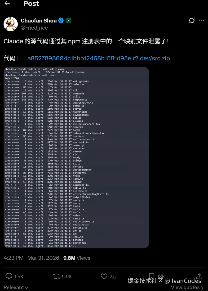 Claude Code 的源码,通过 npm 的映射路径被人扒出来了。