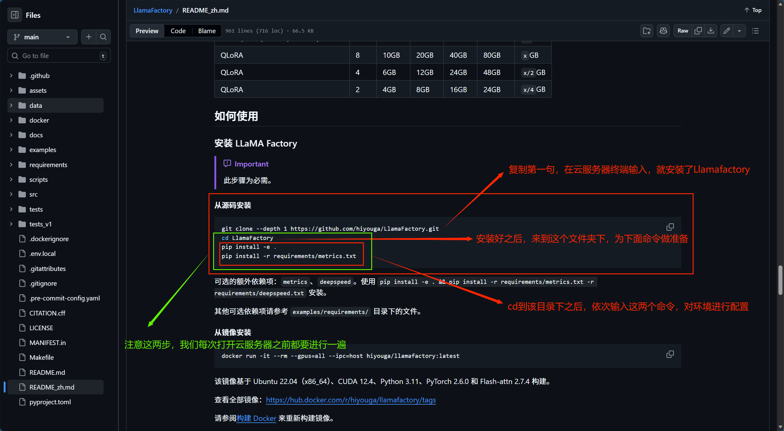 因为Llamafactory是一个微调的框架,我们不需要自己去写微调的代码,就跟yolo一样,我们只需要配置一些信息就能直接使用。