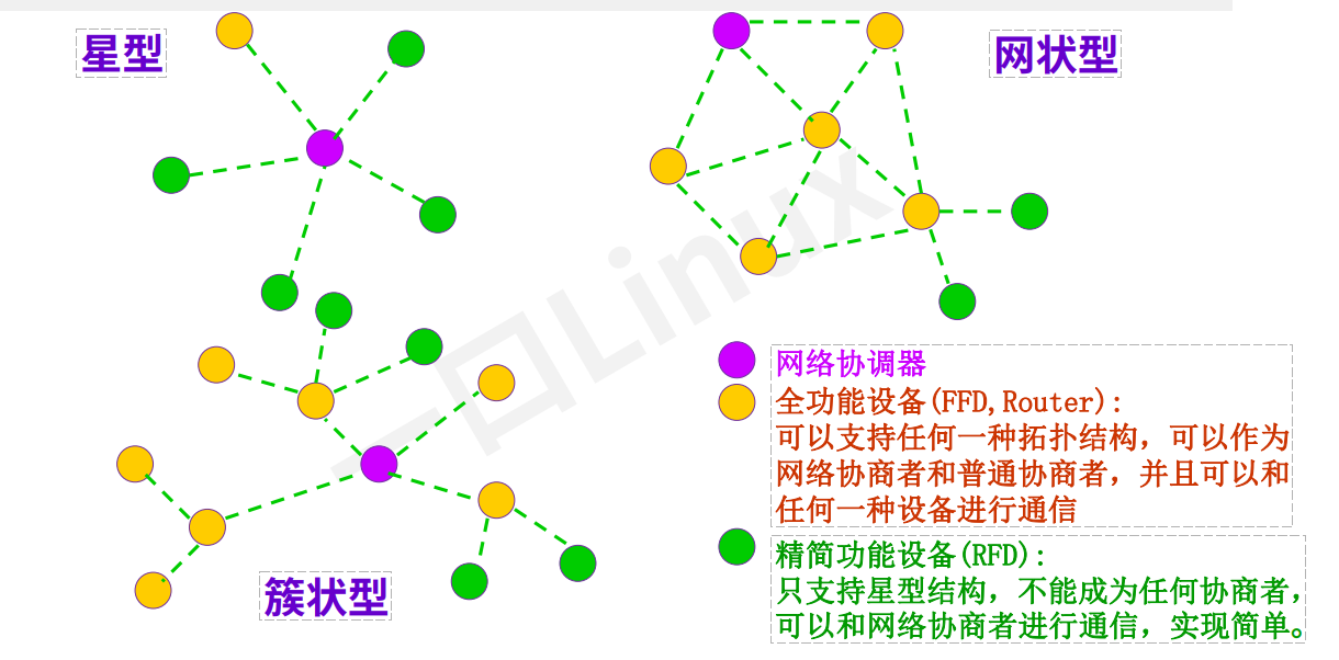 在 ZigBee 无线传感器网络中有三种设备类型: