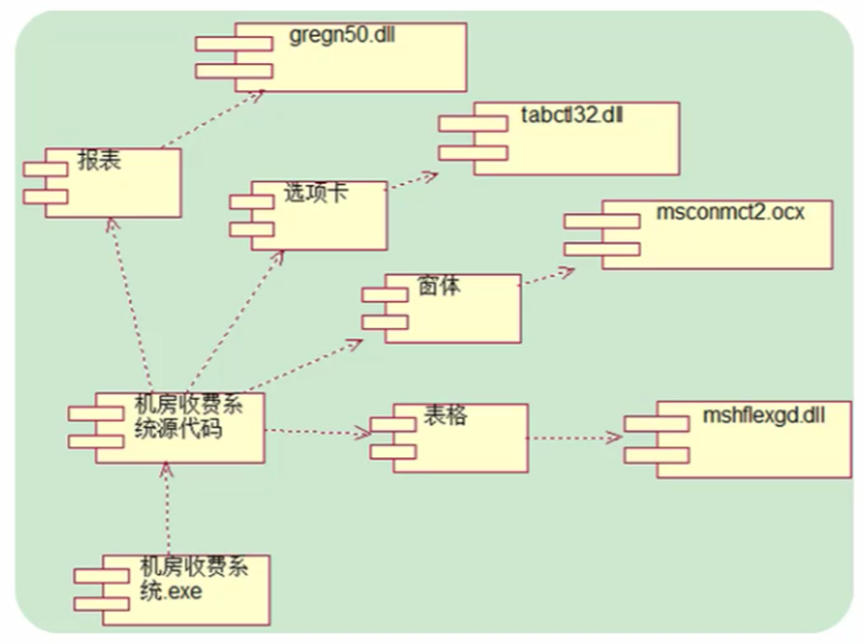 构件图(component diagram)。构件图描述一个封装的类和它的接口、端口,以及由内嵌的构件和连接件构成的内部结构。构件图用于表示系统的静态设计实现视图。对于由小的部件构建大的系统来说,构件图是很重要的。构件图是类图的变体。