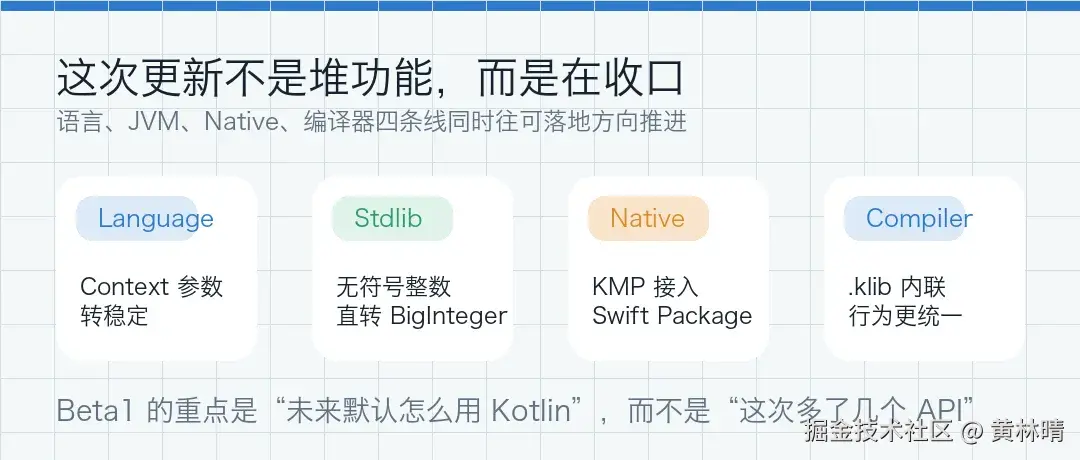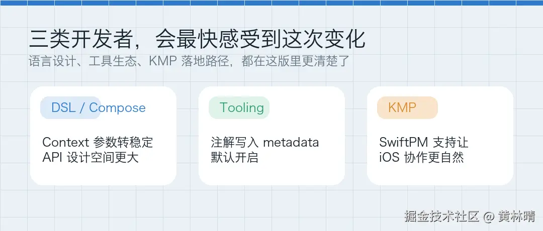 这次最有分量的变化,不是单个 API,而是 Kotlin 在三个方向同时推进: