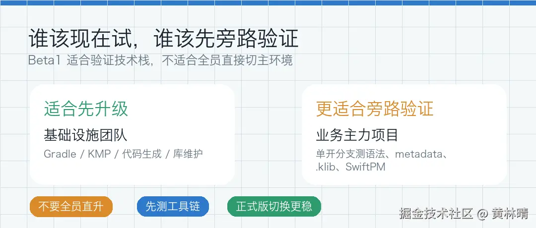 Kotlin 现在主动去对齐这条生态路径,本质上是在降低 KMP 和原生 iOS 协作的摩擦。