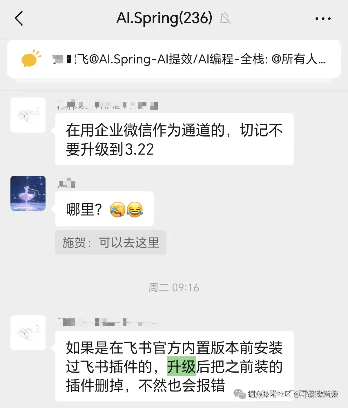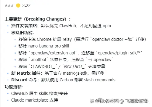 原因是我这两天已经不止一次地收到朋友的消息,他的 openclaw 升级后崩了,其实我们群里很早就有大佬踩过雷,并发出了提醒。