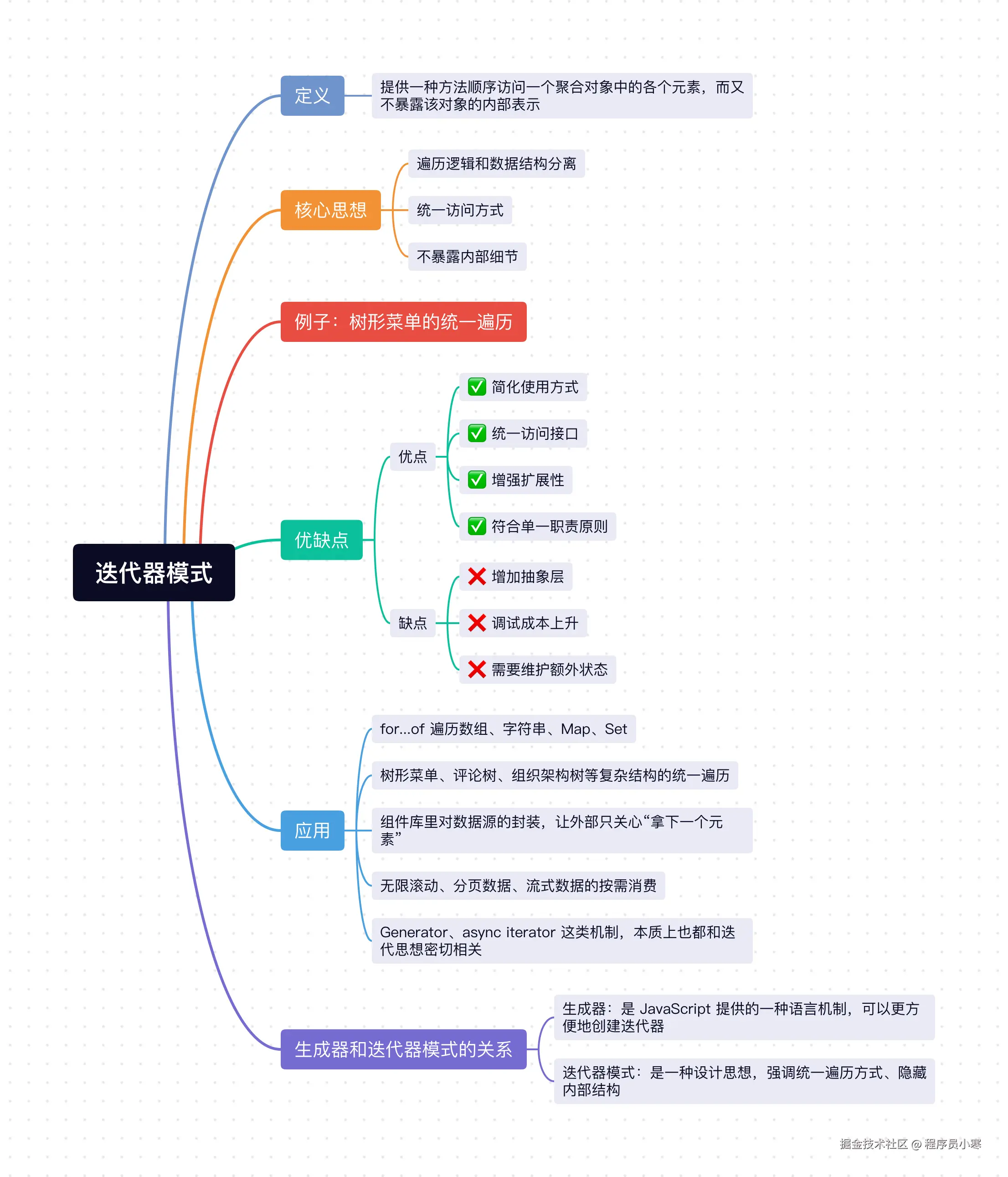 对于前端开发来说,迭代器模式非常实用,像 for...of、Map、Set、树形菜单遍历、分页数据消费这些场景里,都能看到它的影子。它本质上就是帮我们把"怎么遍历"从"怎么使用数据"里拆开,这样代码会更清晰,后面改起来也更从容。