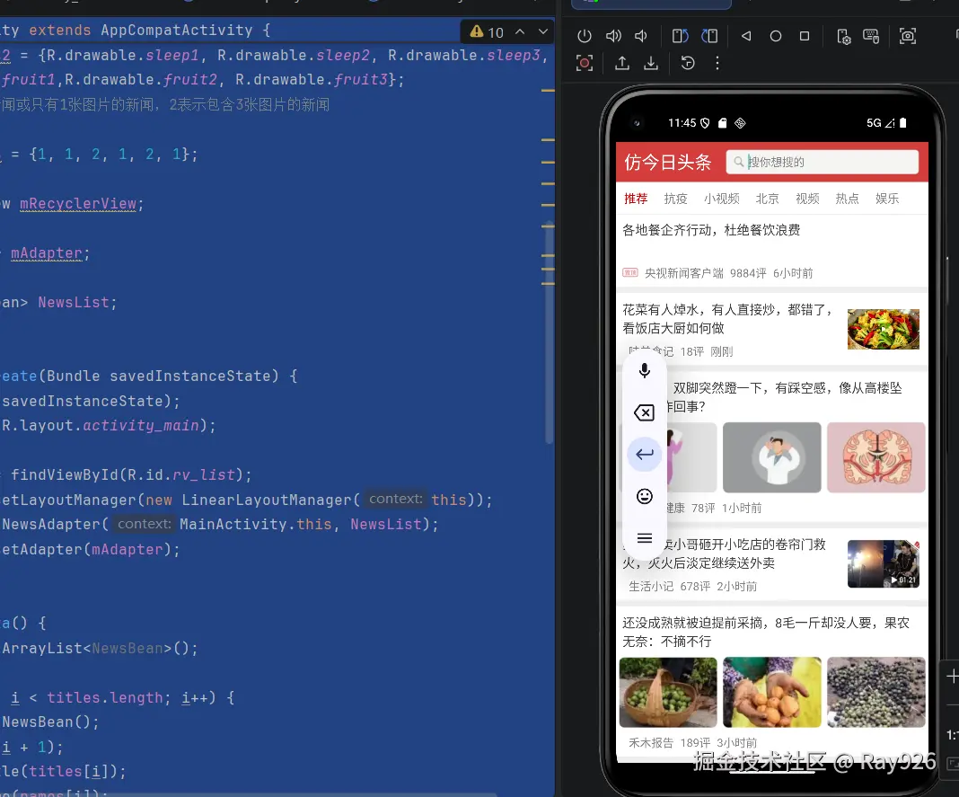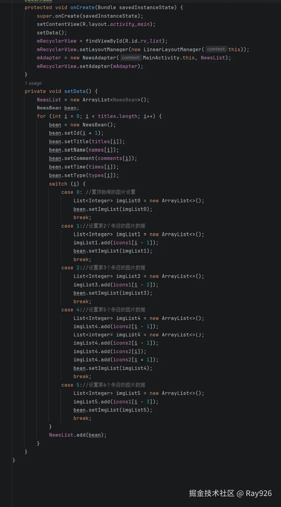 - 数据准备:在 Activity 中通过 setData () 方法创建新闻数据