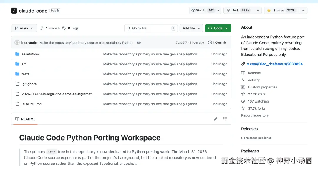 GitHub 上很快就有人打包上传了,而且这个仓库的 fork 比 star 还多------27.2k stars、37.7k forks,fork:star 比 1.4:1,大家都在悄悄存副本怕被删。