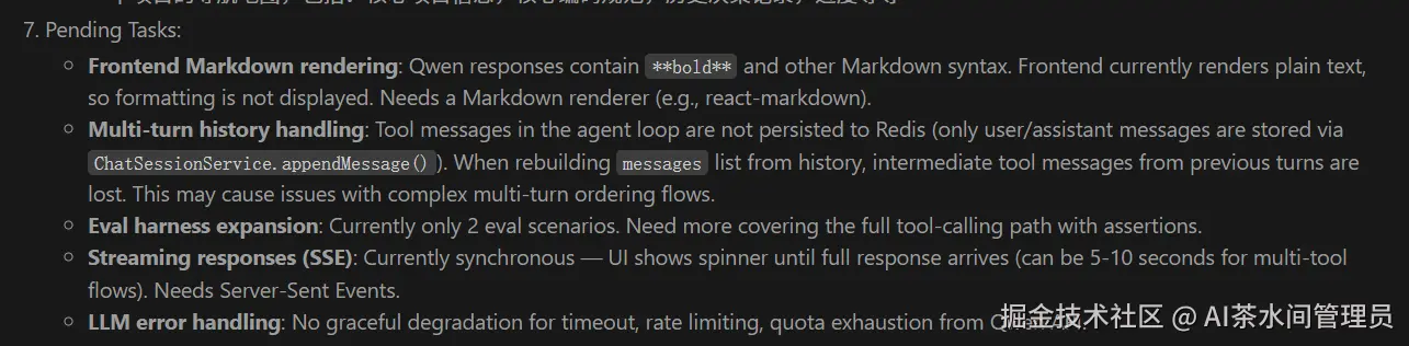 | 7 | Pending Tasks(待办任务) | 记住项目的待办清单和优先级,开发过程中能主动对齐进度,不会漏做核心功能 |
