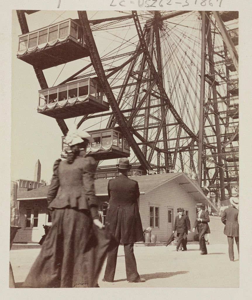 ▲芝加哥世博会上展出的世界首个摩天轮,可同时搭载 2,160 名乘客。(国会图书馆)