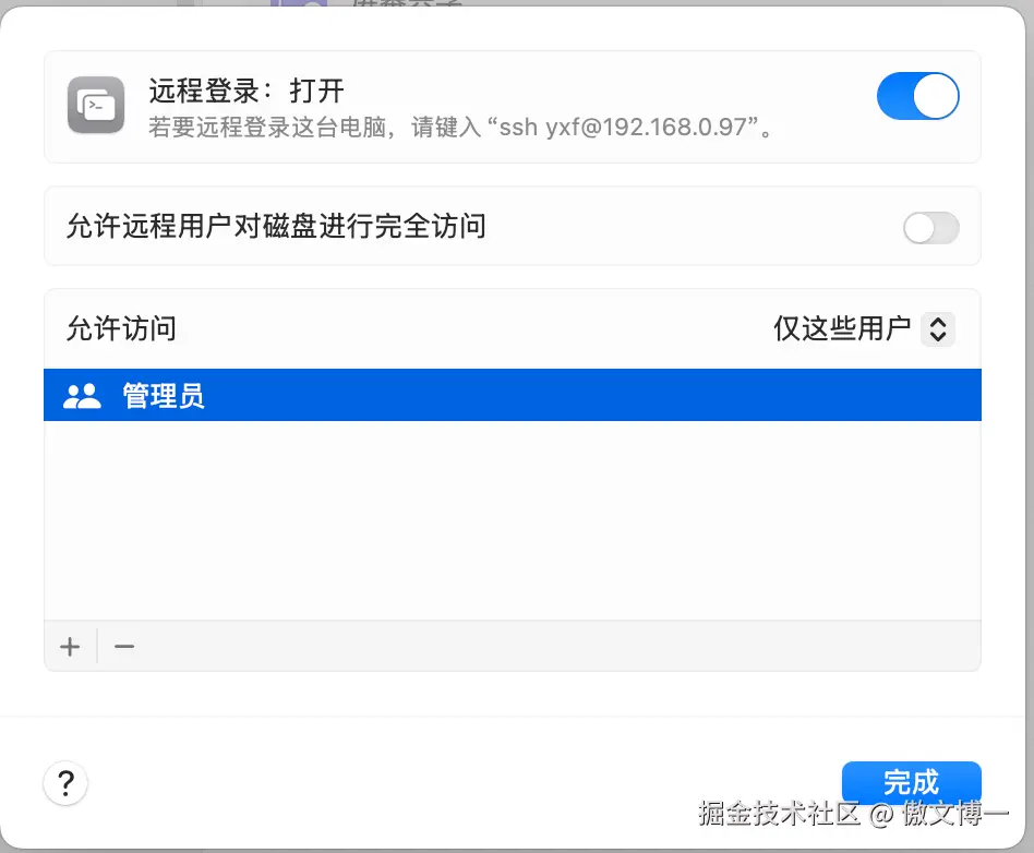 这样之后,就可以通过 SSH 登录另一台 Mac。