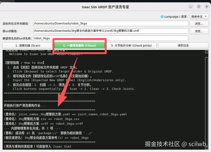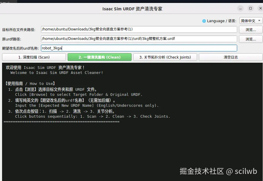 .urdf文件。工具会自动补全上方的文件夹路径。 - 期望改名后的urdf名称 :输入一个完全符合USD规范的纯净名称(例如: