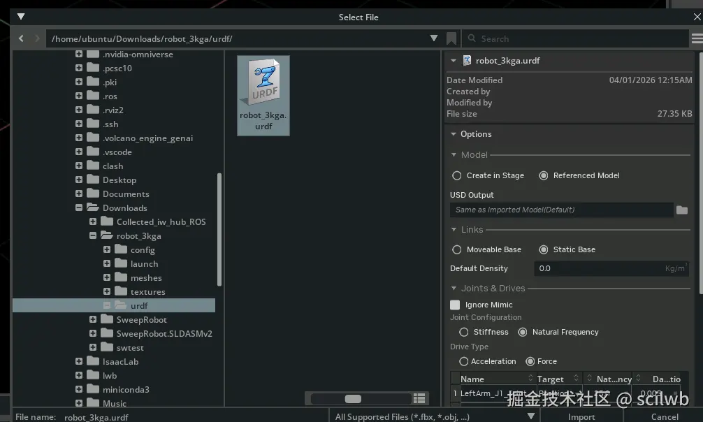 urdf文件夹,选中清洗后的.urdf文件。
