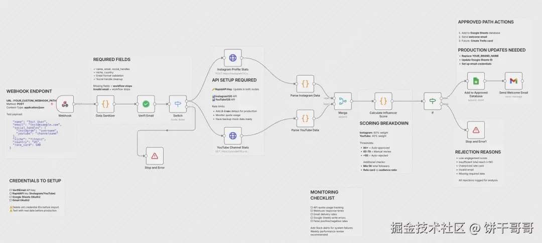 收到网红合作申请后,AI 自动去查她的粉丝数、互动率,算出一个评分,合格的自动发邮件,不合格的自动归档。