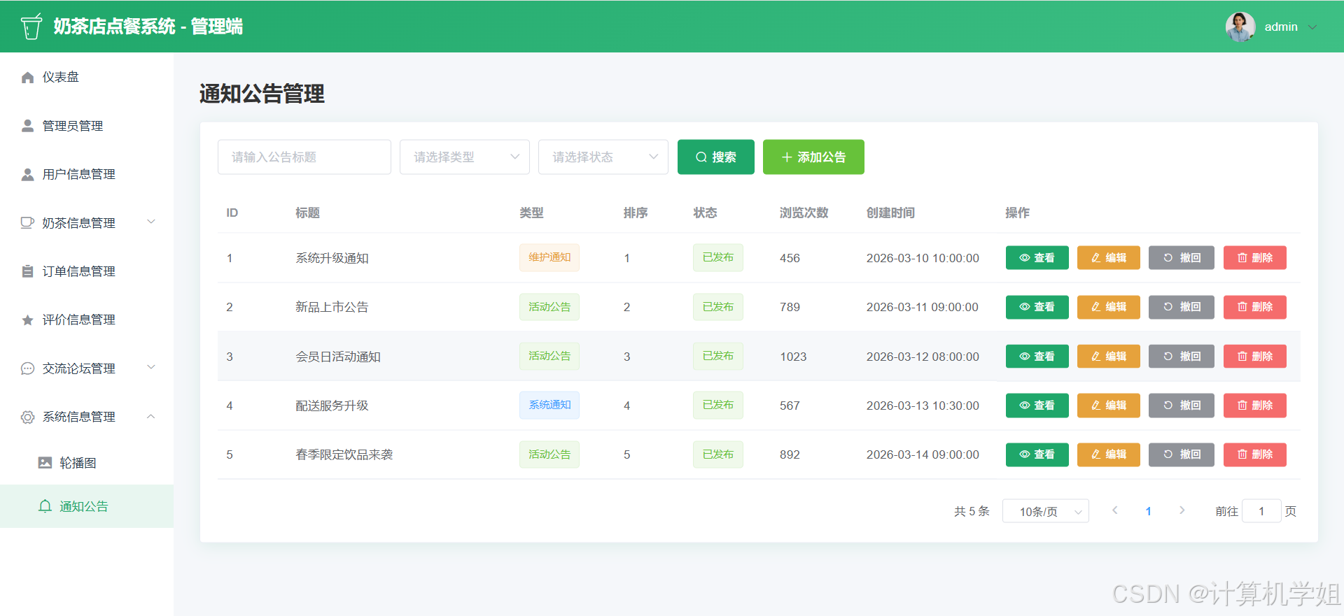 【2026最新原创】基于Java+SpringBoo+Vue+MySQL的奶茶店点餐系统,协同过滤推荐算法,数据可视化统计