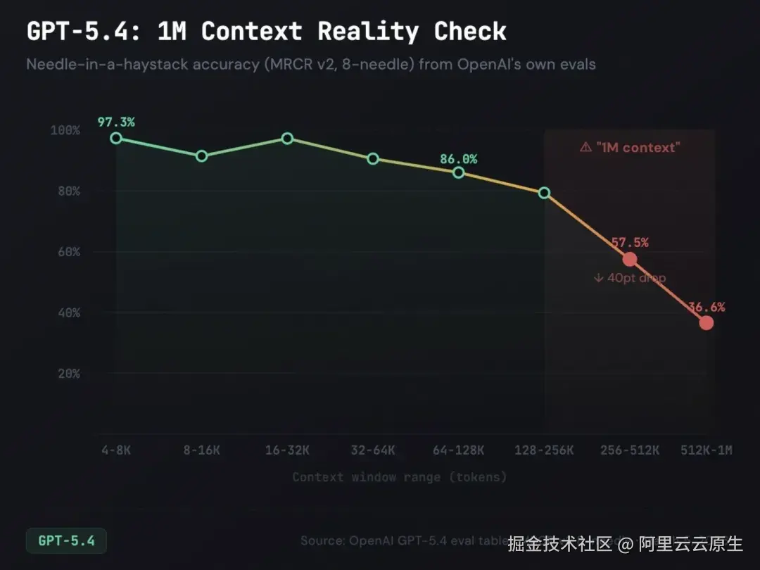 该研究提供了实证支撑:18 个模型在 Terminal Bench 2.0 的测试用例上的表现随上下文长度增加而显著下降,且当上下文中存在低语义相关性的干扰信息时,退化更加陡峭。