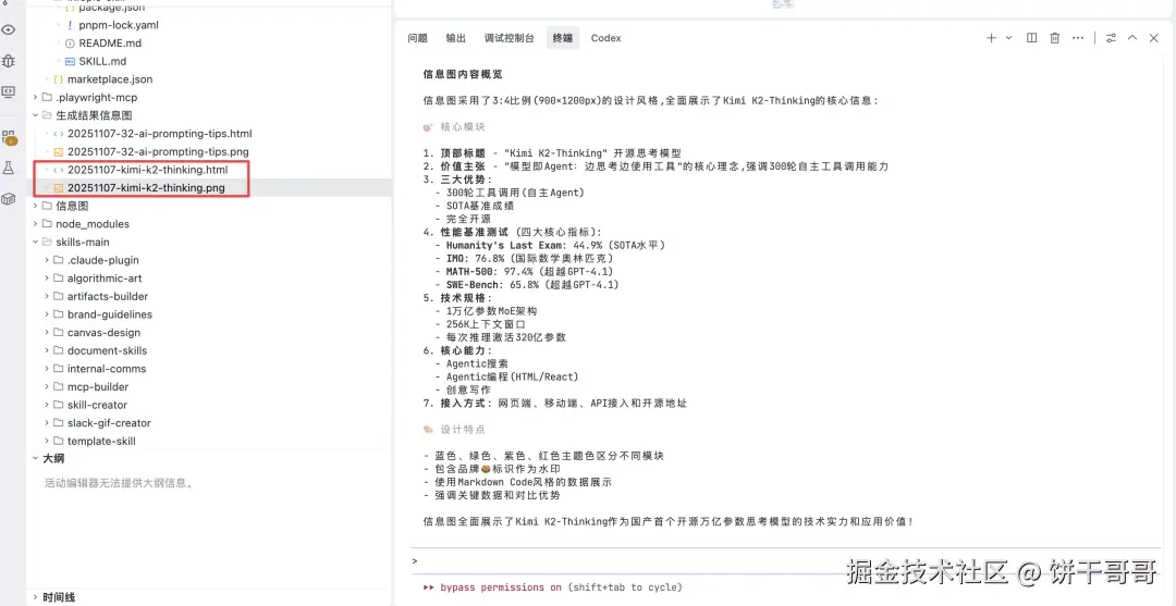 搜索kimi 今天发布的 kimi-k2-thinking的信息,以及网友对它的测评效果,然后调用`infopic-skill`做一个信息图