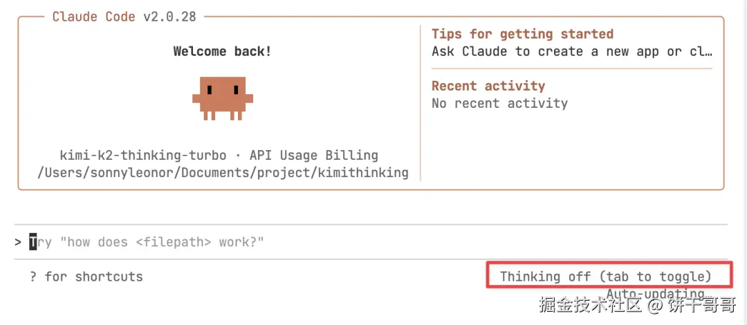 进入后会看到右下角显示 Thinking 关闭