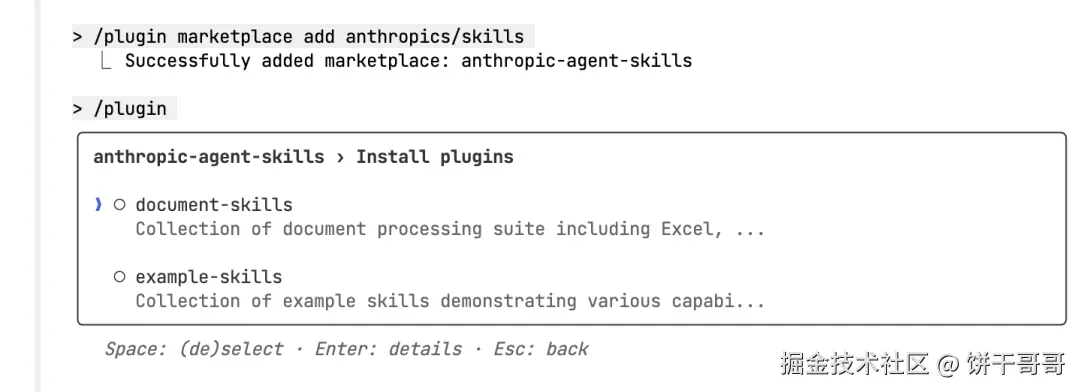 例如通过以下方式可以添加官方的 skill marketplace