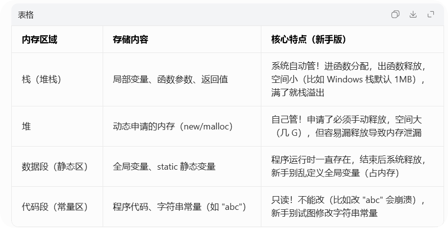 学内存管理第一步不是记函数,而是搞清楚 "内存到底咋分的"------ 就像你家房子分客厅、卧室、厨房,不同区域放不同东西,内存也一样,不同数据有不同 "住处"。