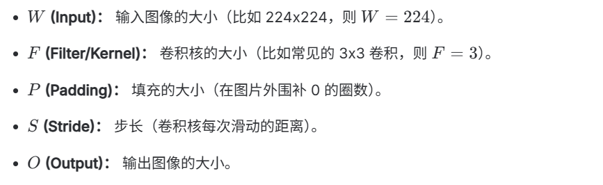 无论多么复杂的网络,其输出尺寸(Width 或 Height)都遵循下面这个黄金公式: