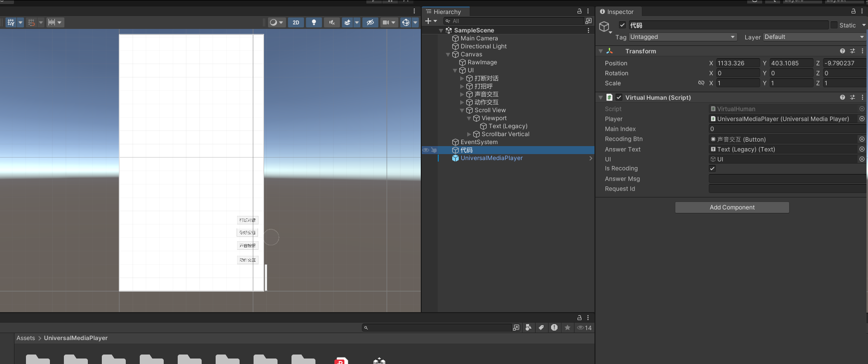 1)场景中加入VirtualHuman代码,之加入这一就行