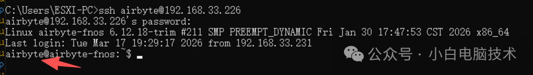 用SSH链接到飞牛(这里的方式是Linux系统要做的),到普通用户登录界面即可(非root)
