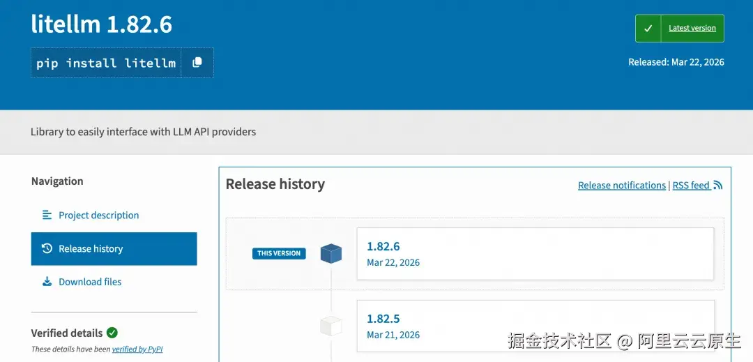 目前,LiteLLM 1.82.7 和 LiteLLM 1.82.8 已被 PyPI 下架。