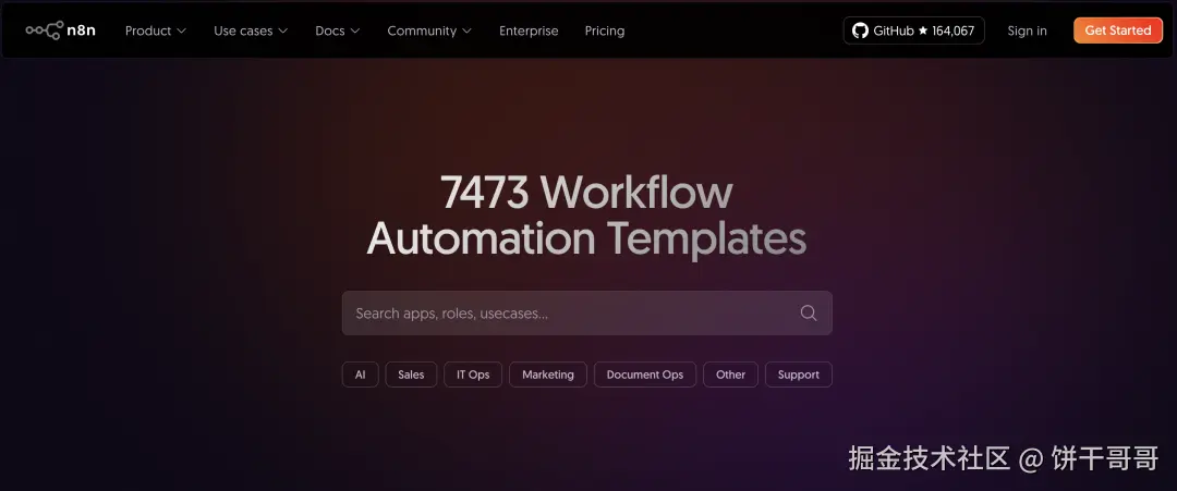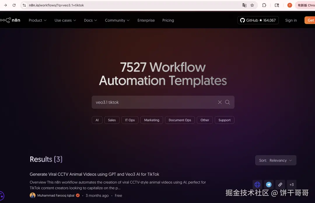 例如可以观察一下网页,地址是n8n.io/workflows/?...