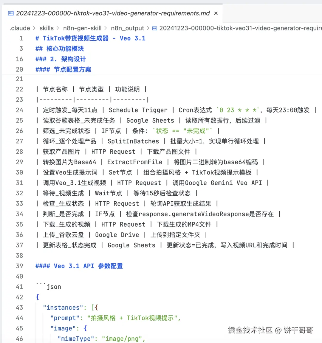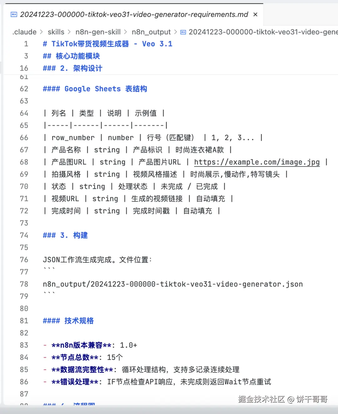 这简直是乙方的救星! 里面详细记录了架构设计、节点配置方案,甚至连 Google Sheets 的表头结构都定义好了。你直接把这个丢给客户,专业度瞬间拉满。