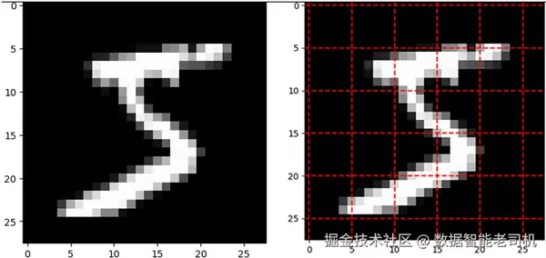 图 3-2. 左边是原始图像;右边带虚线的是切成 patch 之后的图像。