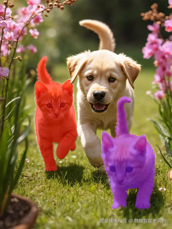 使用 SAM 3 非常直接。需要说明的是,这里我会省略一部分代码,但你可以在本书仓库对应 notebook 中找到完整实现。示例 3-24 演示了如何加载模型和 processor,并通过文本 prompt 分割对象。这里我让模型去选择图像中的猫。