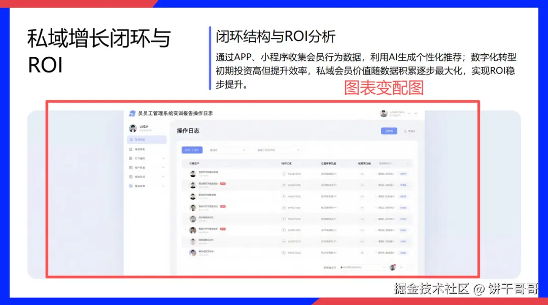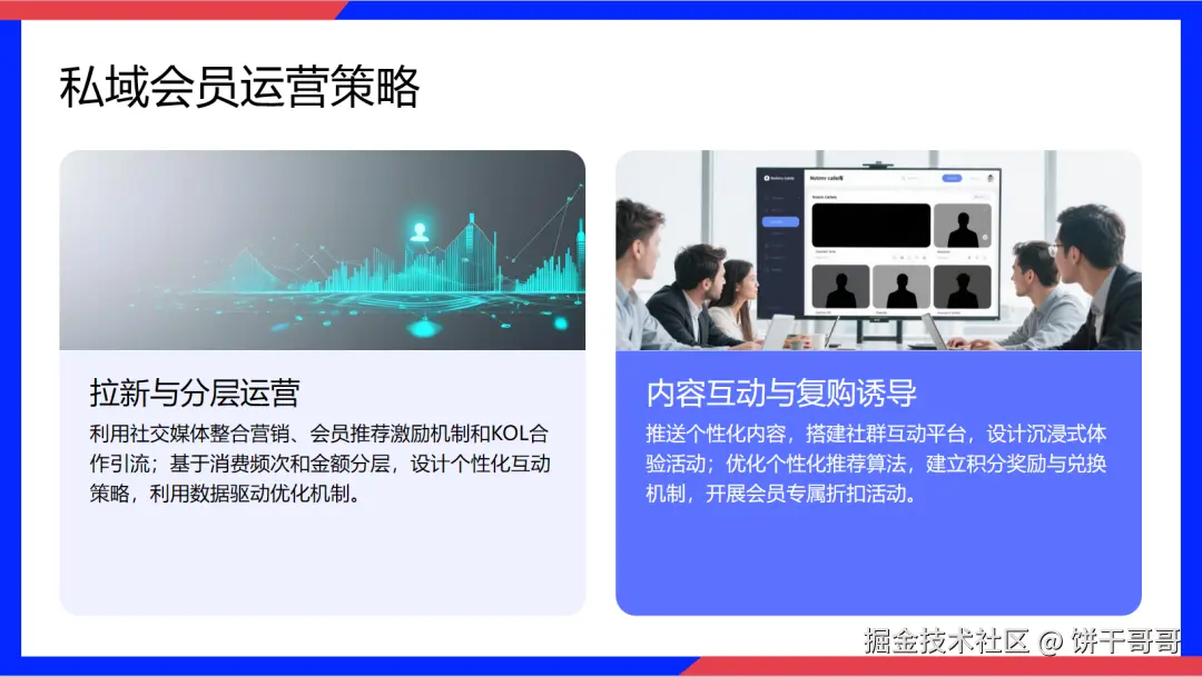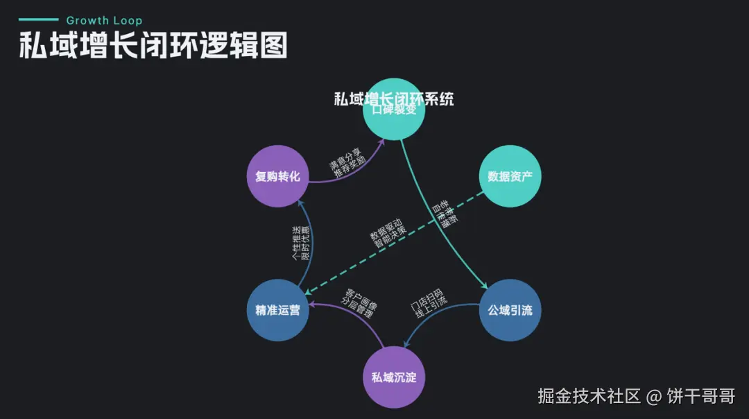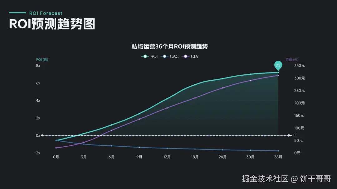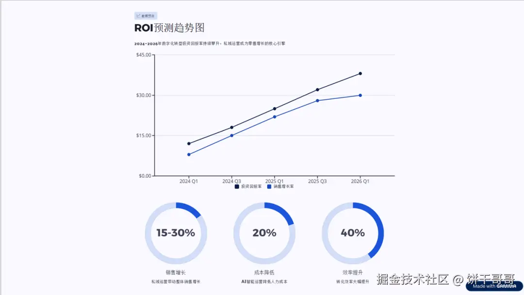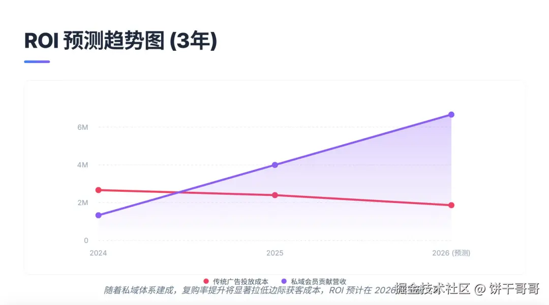 硬性指标: 必须包含"私域增长闭环逻辑图"和"ROI 预测趋势图";配色必须是"科技蓝+渐变紫";必须包含具体行动计划。