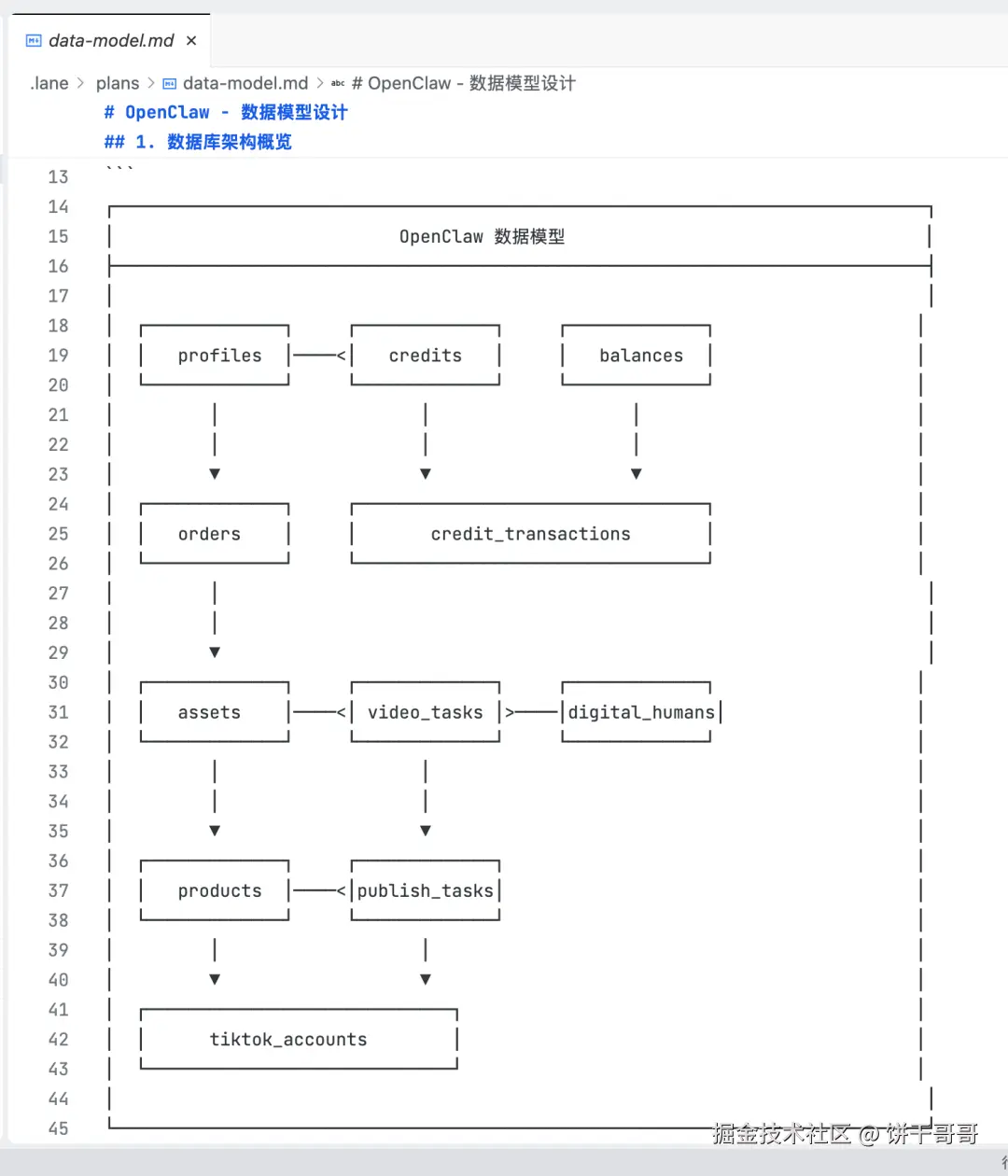 -**`data-model.md`**:设计 Supabase 的数据库结构。必须包含 `profiles`, `projects` (存储视频任务), `assets` (素材) 等表,并明确定义 RLS (Row Level Security) 策略。