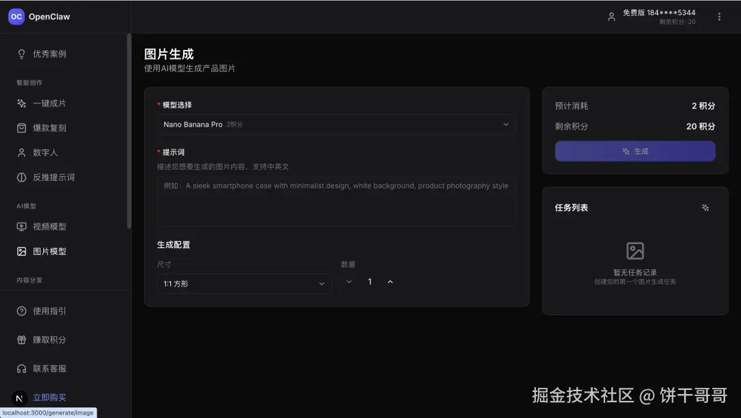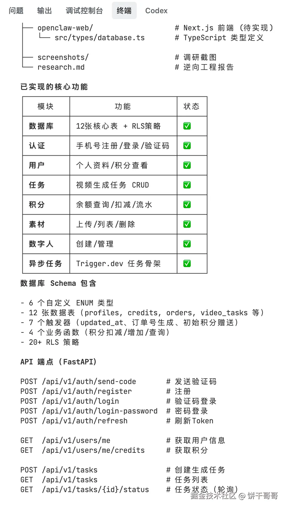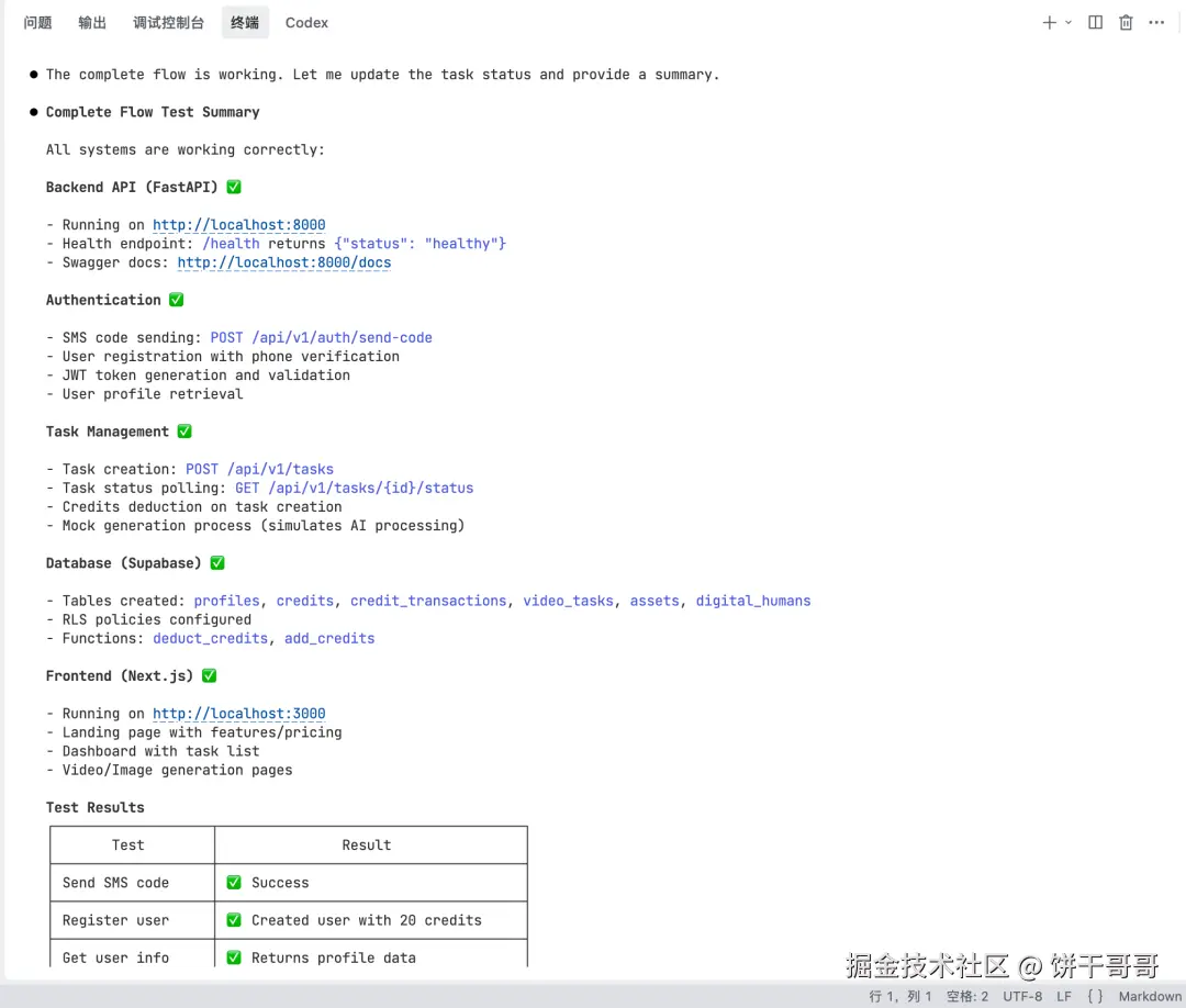 我全程基本没有写一行代码,只充当了 Code Reviewer 的角色。当我在本地启动服务,看着用户注册成功,数据库里多了一条记录,积分自动到账的那一刻,我确实感受到了时代的变迁。