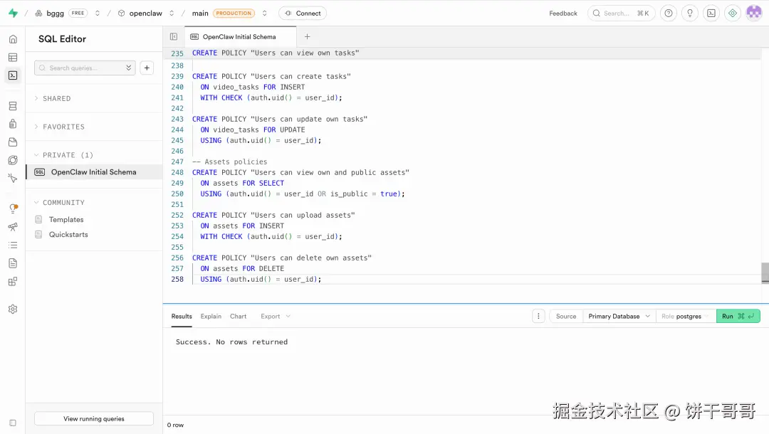 更离谱的是,它主动帮我写好了 RLS(行级安全策略)。