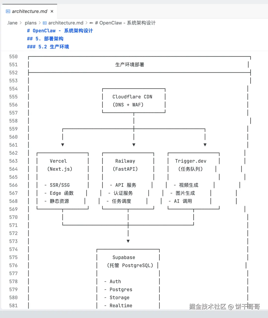 -**`architecture.md`**:系统架构图。描述 Next.js 如何通过 Server Actions 写入 Supabase,并触发 Trigger.dev 的异步任务。