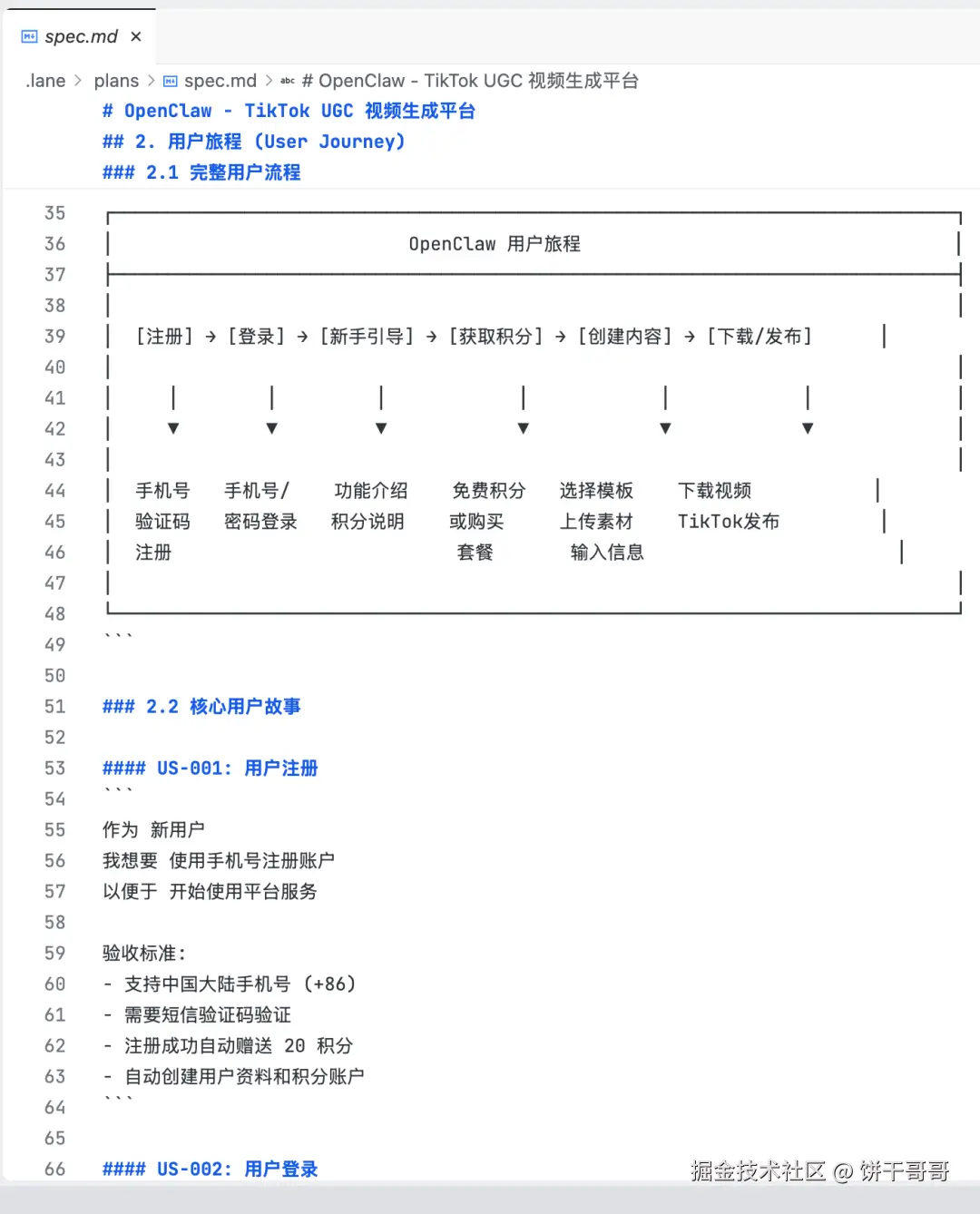 -**`spec.md`**:详细的需求规格说明书。定义用户从"注册"到"下载视频"的完整路径。