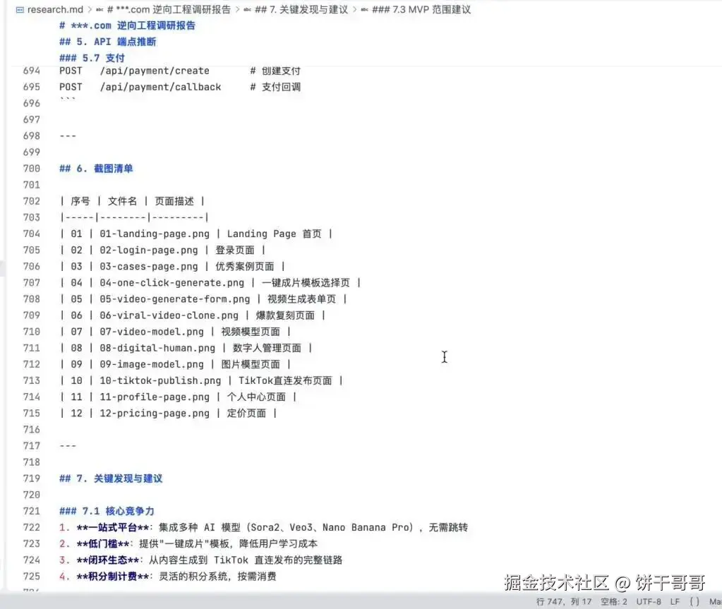 从核心功能、到前端视觉规范,到页面路由结构、到API端点、到数据库的表格结构,这些密密麻麻的字才是真实开发的需求: