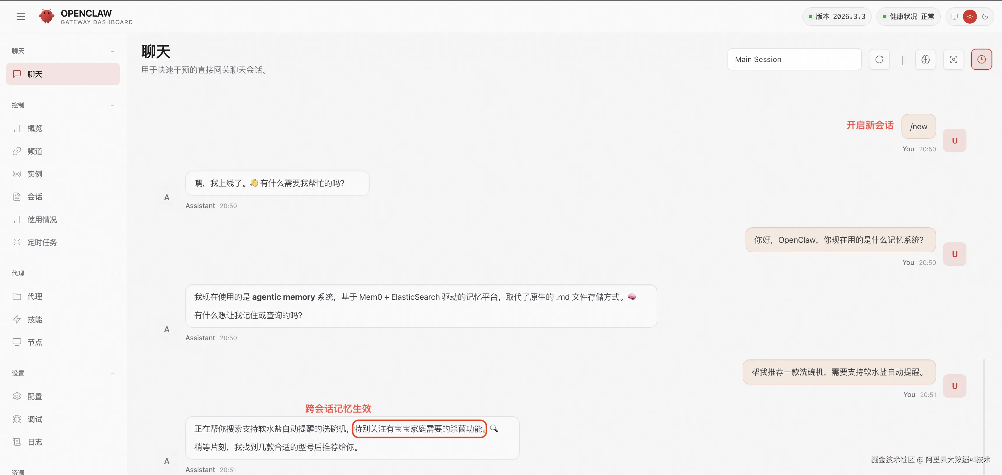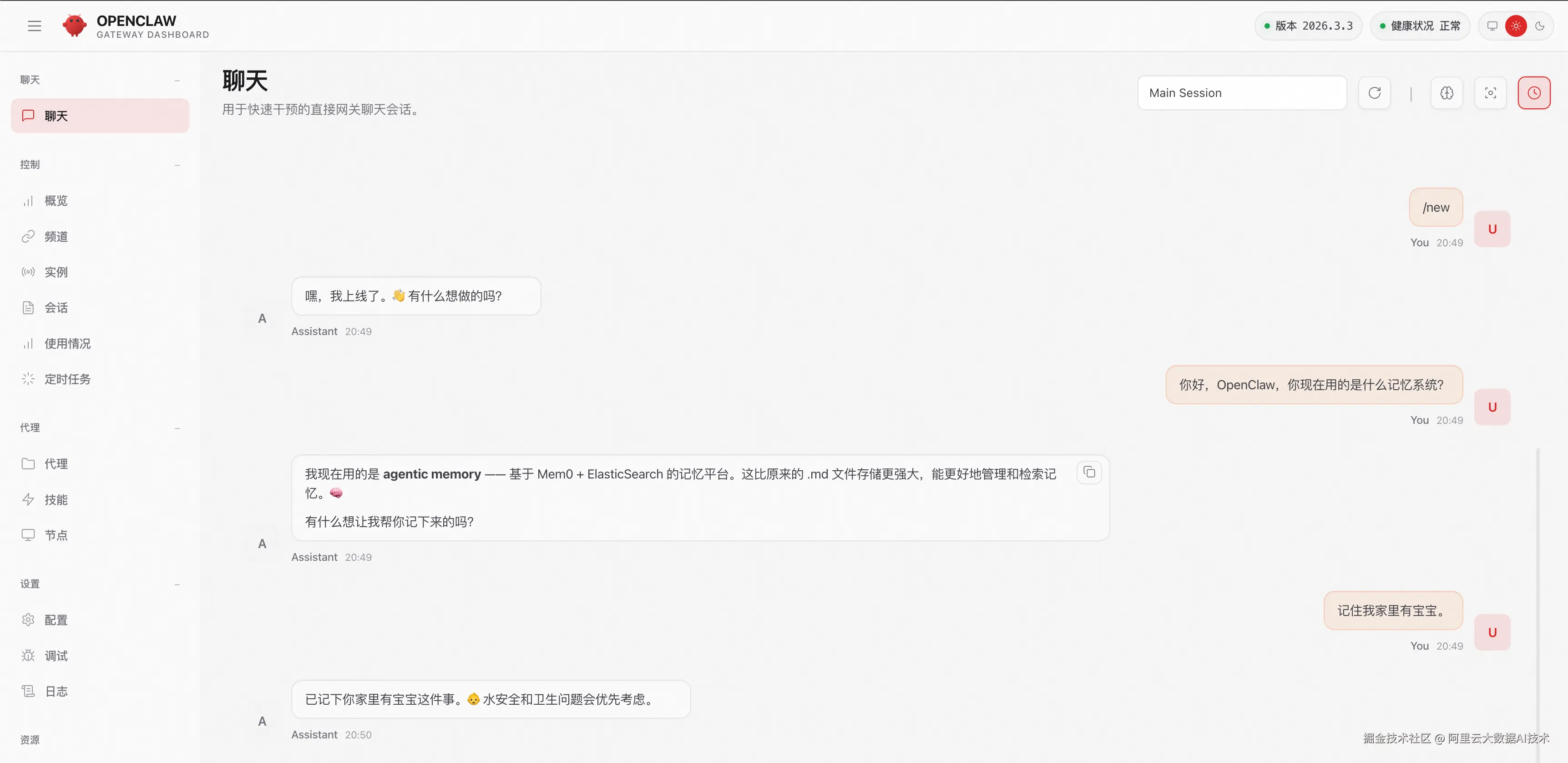 OpenClaw是一个开源的个人 AI Agent 框架,它将 LLM 与操作系统、Web 访问、文件操作等能力相结合,使 AI 能够连贯执行复杂任务。OpenClaw 的原生记忆系统存在上下文长度受限、检索效率不高、不支持跨会话连续性等短板,接入 Mem0 + Elasticsearch 可以解决这些问题。