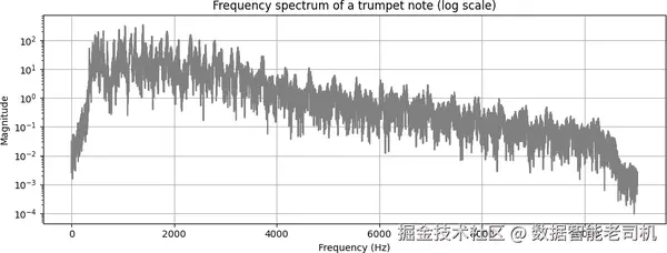 图 6-3. 小号音符的频谱(对数坐标)。