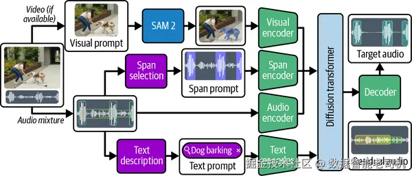 这个模型并不只是把枪声单独隔离出来;它还会生成一份"枪声被移除"的音频版本,因此男性说话声就完整地保留在 residual 轨道中。这种"target + residual"的处理方式,让 SAM Audio 不只是一个滤波器,它还是一个真正意义上的音频编辑器。无论你是想把某个乐器单独提出来做 remix,还是想通过隔离背景嗡声来清理一段有噪音的采访,它都能保证各个分离音轨重新合成后,能完美还原原始音频信号。