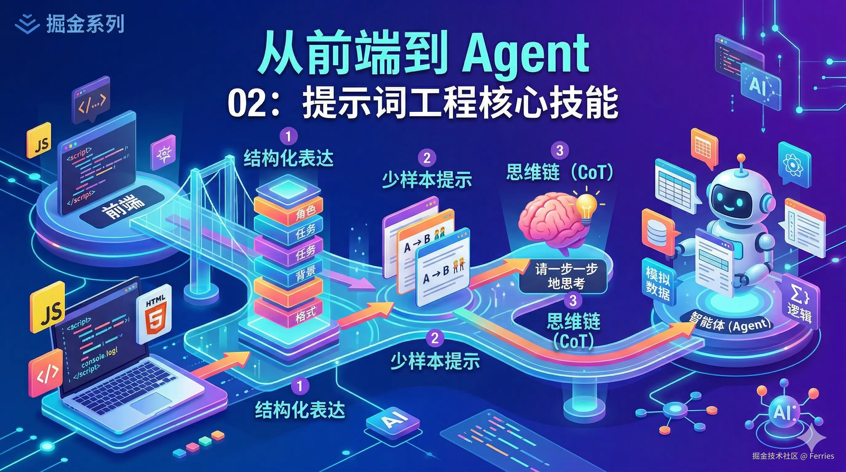 下一篇文章,我们将基于本文的提示词工程基础,进一步学习 LLM 的推理计算细节,以及如何将提示词工程与前端开发结合,实现简单的 AI 交互功能。跟着学习路径走,我们逐步从"会用 AI"走向"会用 AI 解决实际开发问题"。