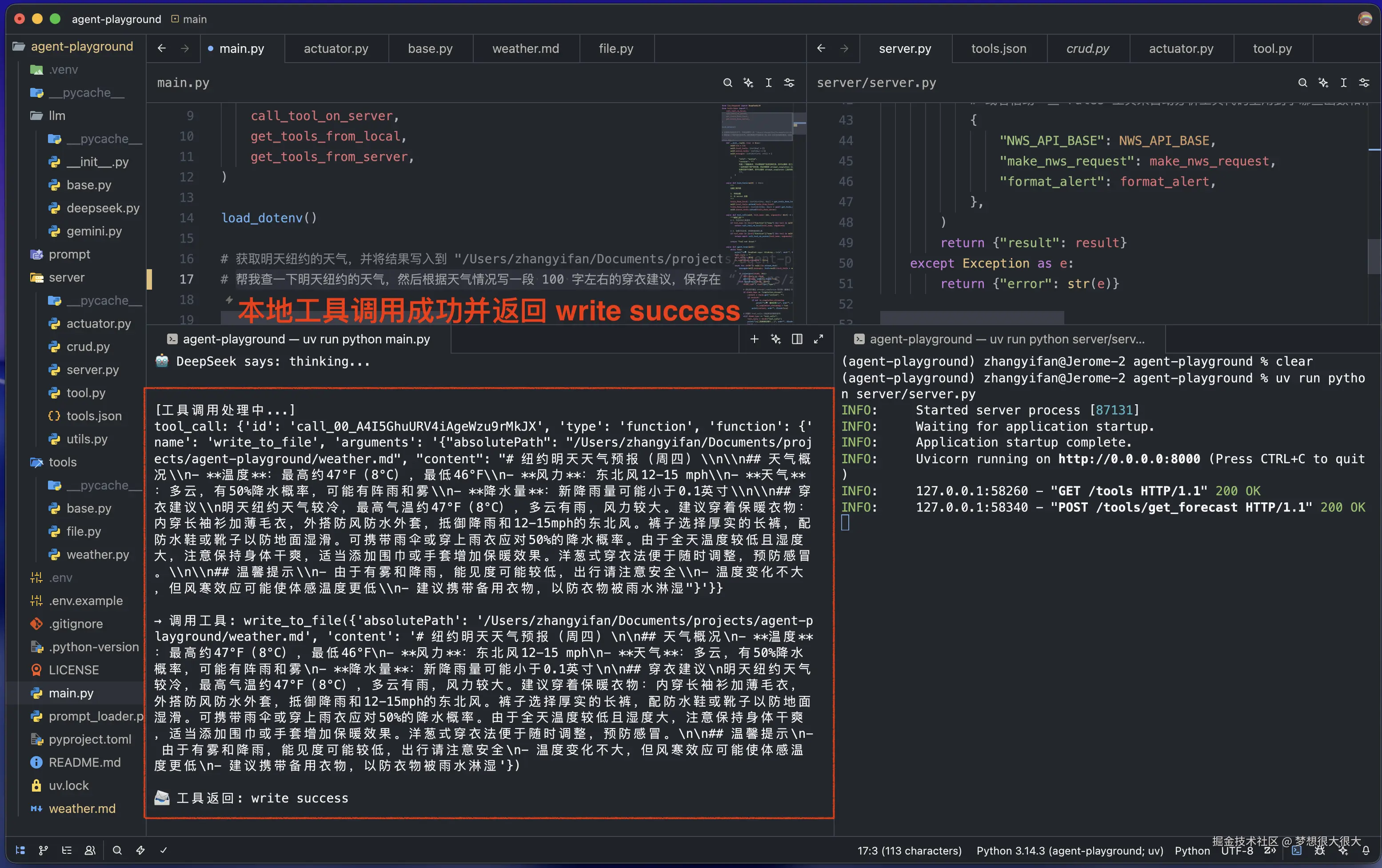- 最终让 Agent 能够完成复合任务:获取明天纽约的天气,并将结果写入本地 Markdown 文件