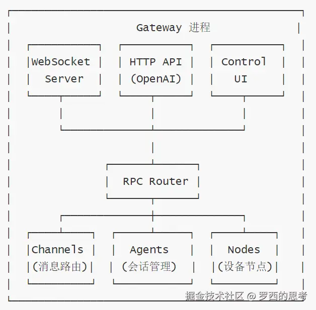 [\[源码导读\] OpenClaw 架构深潜](https://link.juejin.cn?target=https%3A%2F%2Fwww.cnblogs.com%2Fliuscraft%2Fp%2F19731669 "https://www.cnblogs.com/liuscraft/p/19731669")\]([www.cnblogs.com/liuscraft/p...](https://link.juejin.cn?target=https%3A%2F%2Fwww.cnblogs.com%2Fliuscraft%2Fp%2F19731669 "https://www.cnblogs.com/liuscraft/p/19731669")) 本文使用 [markdown.com.cn](https://link.juejin.cn?target=https%3A%2F%2Fmarkdown.com.cn "https://markdown.com.cn") 排版