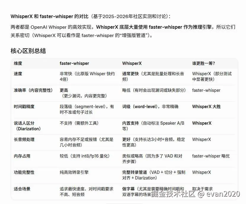 WhisperX 通过一系列优化,使其成为更适合生产级语音转录的强力工具。