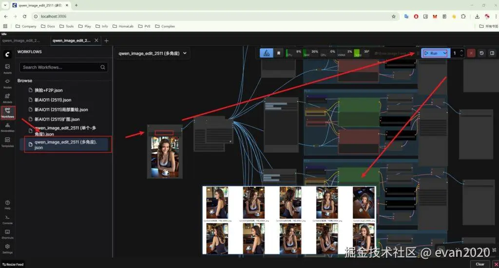 打开网址,点击workflows,双击多角度工作流