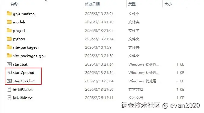 启动文件新增了一个startGpu.bat,需要cpu启动的选择cpu,需要gpu启动的选择gpu